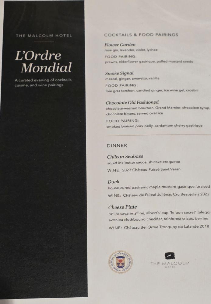 Ready to serve dinner, everyone thoroughly enjoyed their cocktails, Llyn, Vice Echanson, welcomed us to The Malcolm, and wished us a delightful evening. Erika from Galileo Wines was also introduced, she visited each table to explain the wines, followed by Executive Chef Graham Smith.