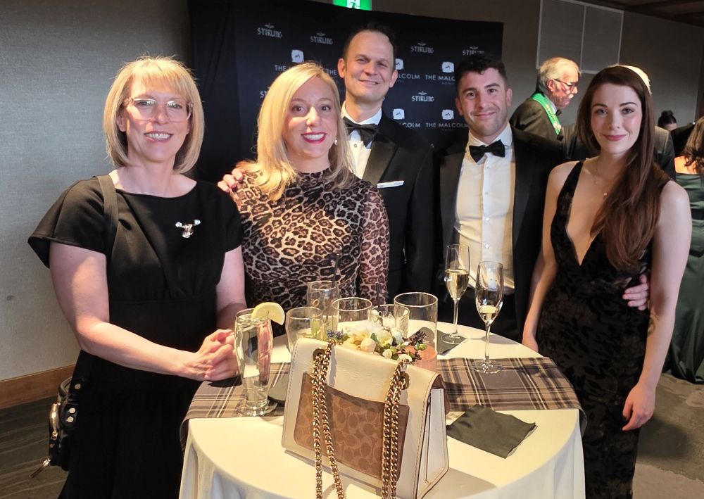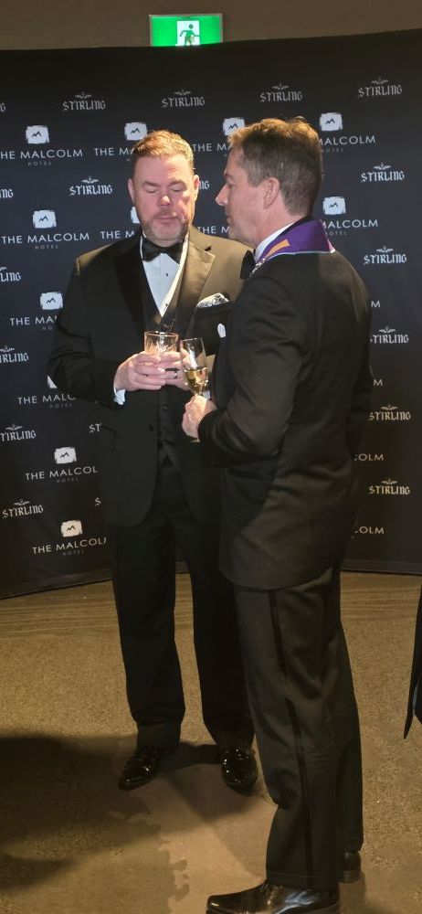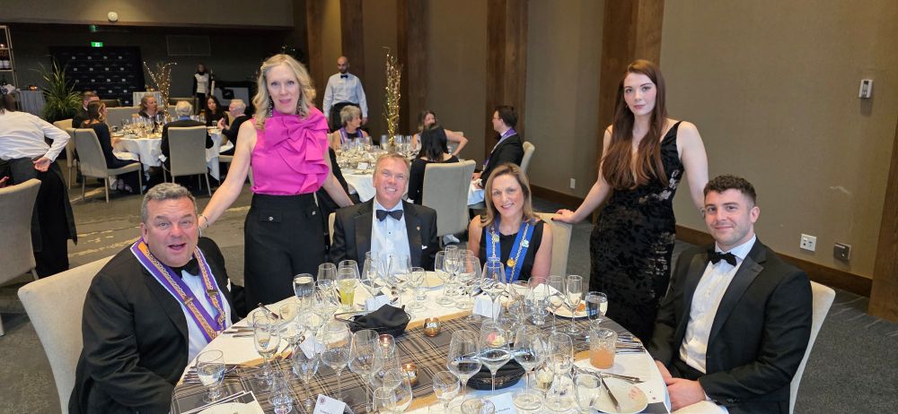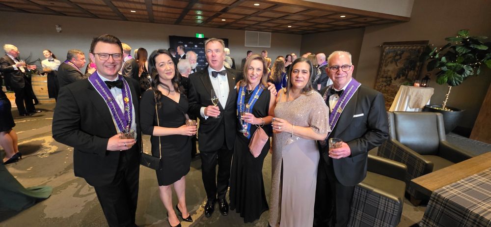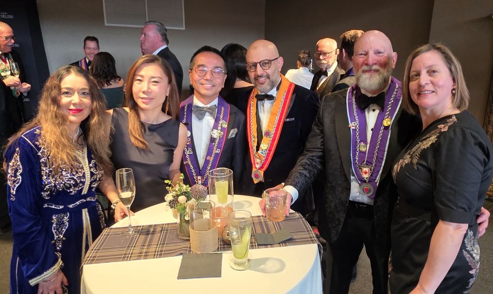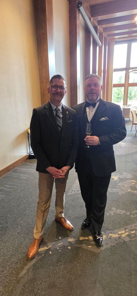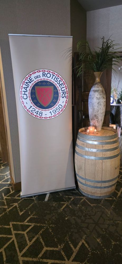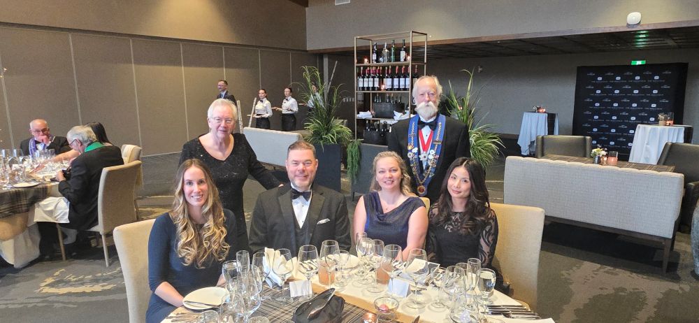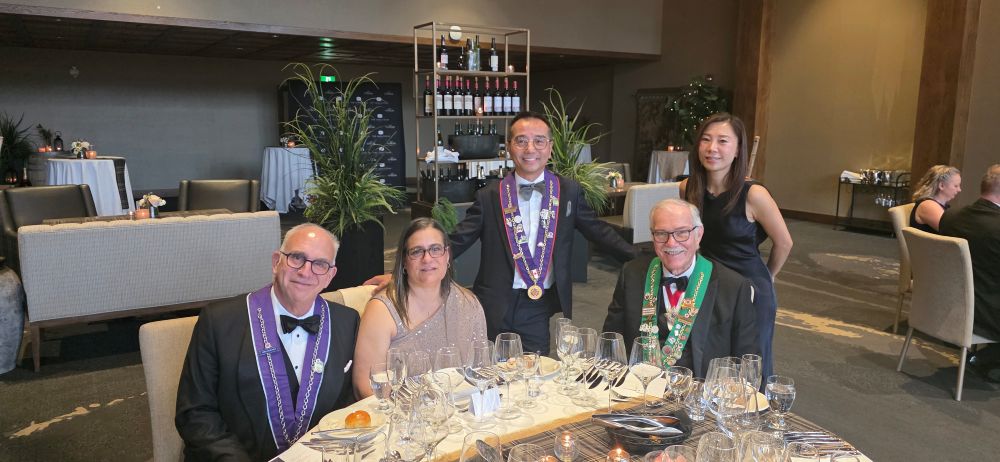 Toni-Marie Ion-Brown, Chancelière du Canada, welcomed us to the Malcolm, and enthusiastically thanked our hosts, along with ensuring we admired the view out of the picture windows of the Three Sisters. David Jones of Everwild was presented with a 10-year commander pin. Toni then welcomed our guests for the evening, reminded us of the rules of the table and the evening commenced.