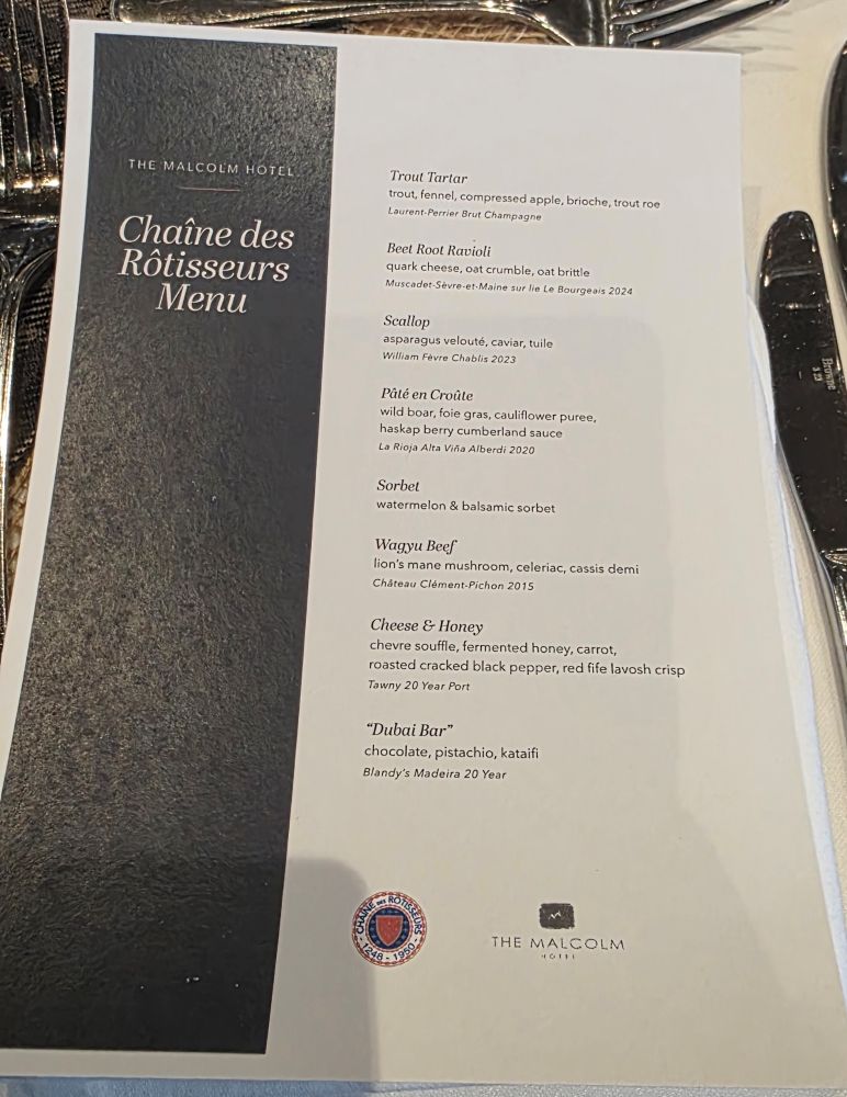 Two amazing dinners served in two days. This marks our third event at The Malcolm. Our first in March 2025. We value this property and look forward to continuing to enjoy the weekend here, snow or shine.