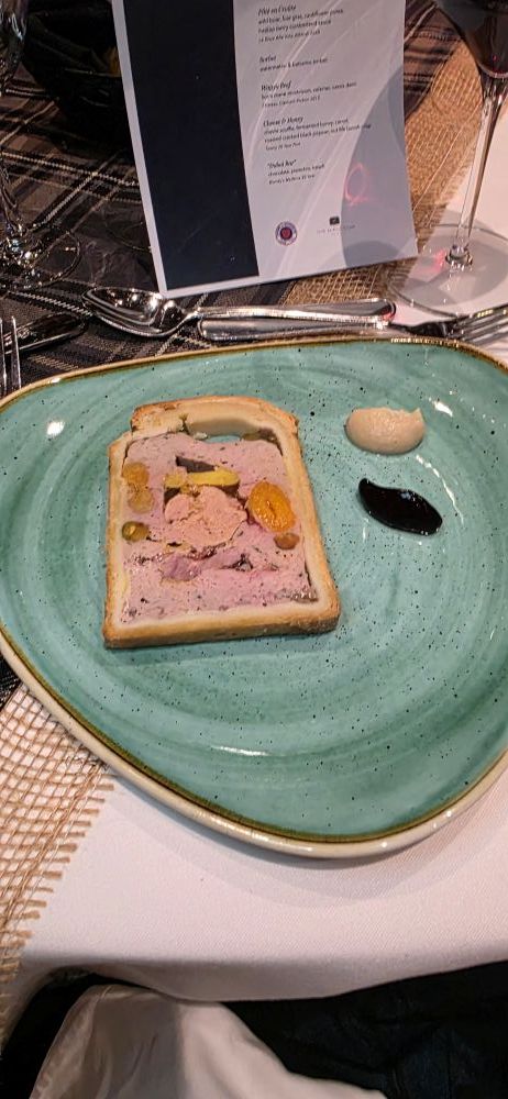 Wild boar, foie gras, cauliflower puree, haskcap berry Cumberland sauce
