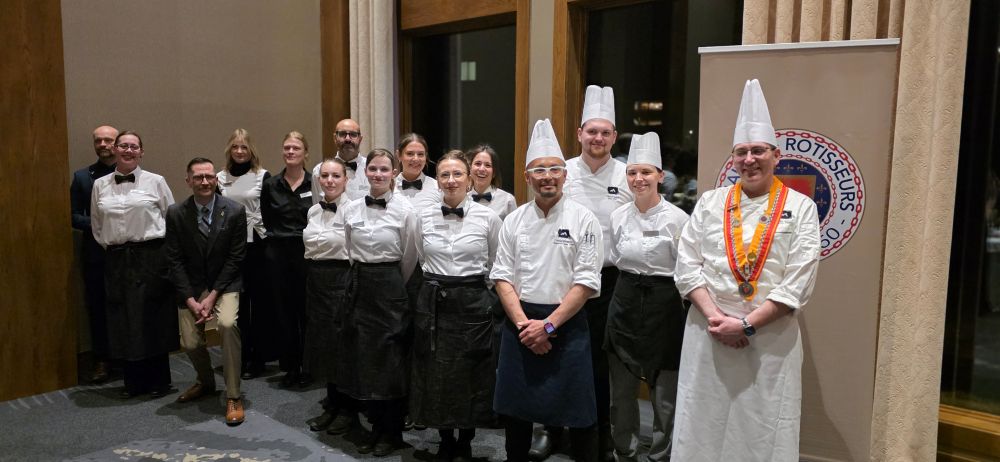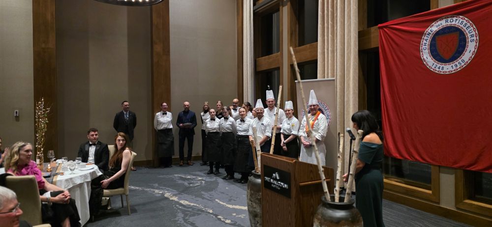 Next came time for the brigade to enter the dining room. As they arrived, members and their guests stood, giving them a round of applause. In Toni’s closing comments she highlighted the military style service, the thoughtfully presented menu, having a mocktail or cocktail before dinner, along with the care that had been taken with the wine pairings. A few standouts were the exceptionally sliced beets for the ravioli, and the pastry on the Pâté en Croûte.