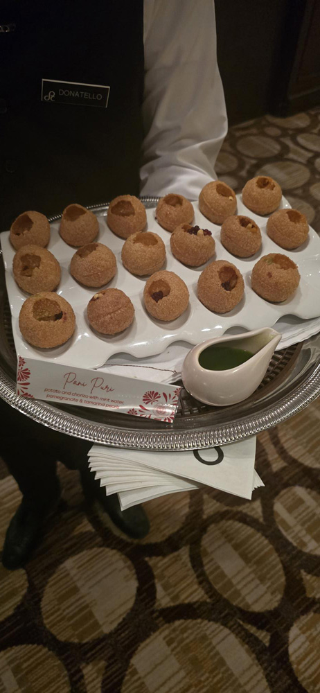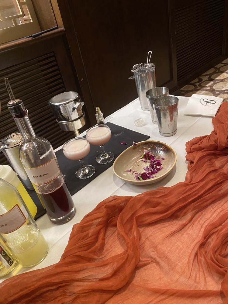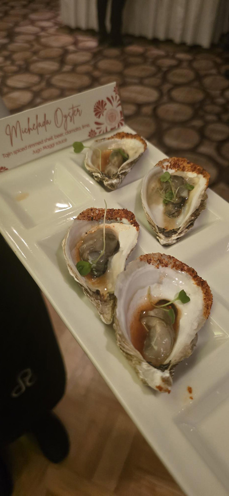 Bartenders creating smoked Old Fashioneds with CPC ice cubs, along with a watermelon lime whiskey sour, accompanied the sensation hors d’oeuvres of fresh oysters, a crisp potato shell filled with grilled lamb and mint, along with a slice of purple potato topped with a quail’s egg.