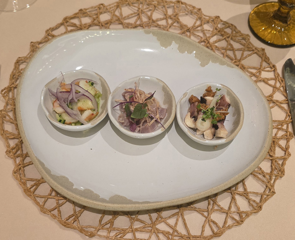 Prawn aguachili, tuna Nikkei, octopus with chorizo vinaigrette