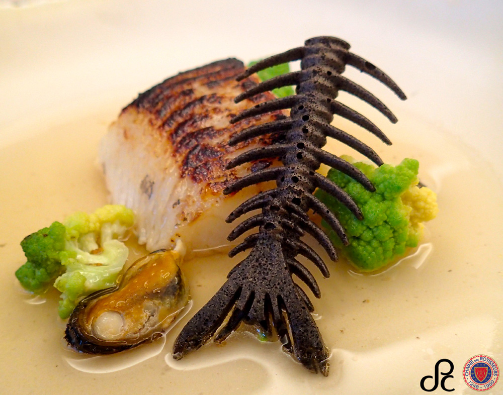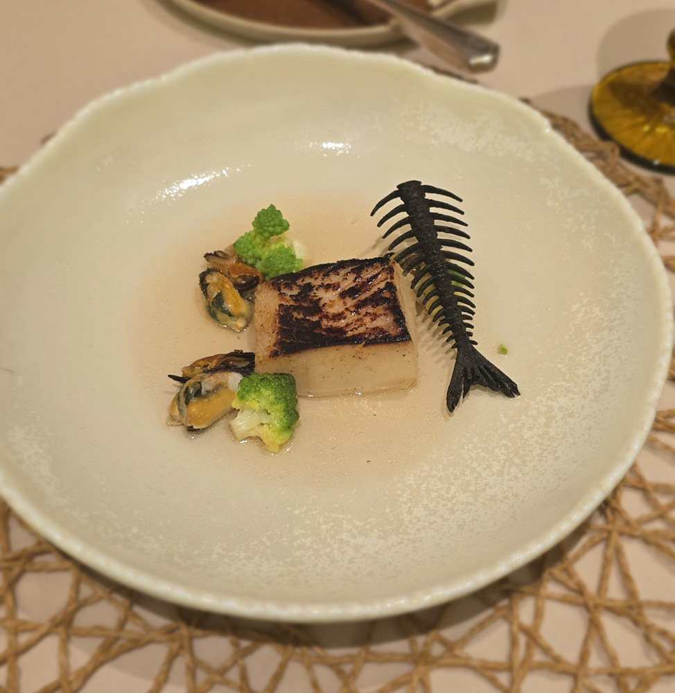 Miso cured sable fish, concentrated dashi, smoked mussels, charred onion cracker.
