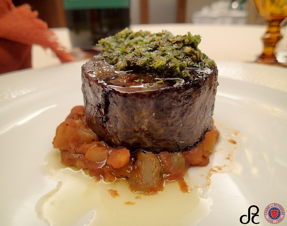 Beef cheek medallion, cassoulet Chilena, chimichurri